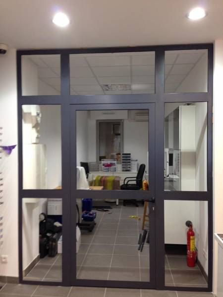 Cette cloison intérieure a été réalisée sur mesure pour un professionnel. Elle est en acier, réalisée pour un opticien lunetier du boulevard Baille à Marseille dans le 5ème arrondissement. Elle se compose de verres feuilletés 44/2, cette cloison intérieure permet une bonne isolation acoustique. D'autre part, les verres feuilletés utilisés ici assurent, en cas de bris de verres ou de casse, la protection à la personne en se cassant en tous petits morceaux.